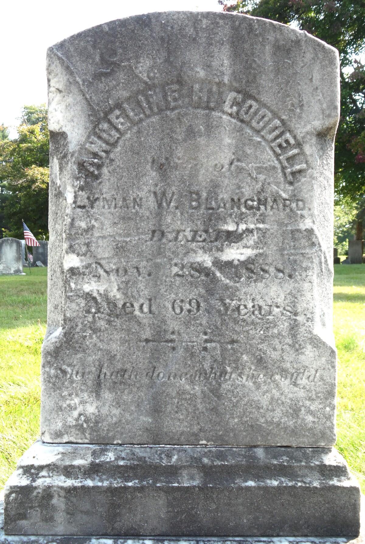 Gravestone of Angelina H. (Goodell) Blanchard