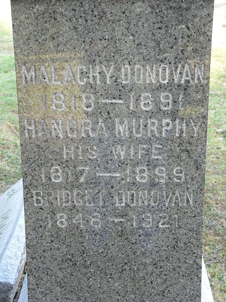 Inscription on the gravestone of Maachy and Hanora Donovan