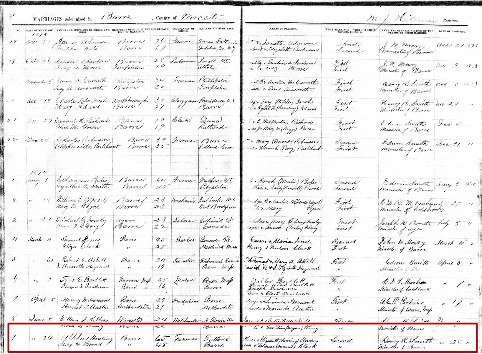 Marriage Record of Lucy H. Broad and Alpheus Harding