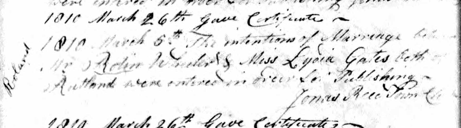 Marriage Record of Lydia Gates and Rowland Wheeler