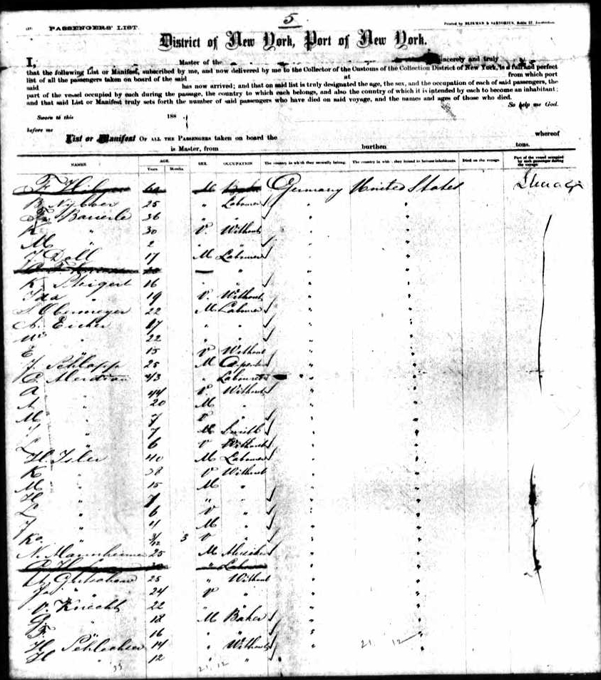Passenger List of the Meridan's crossing