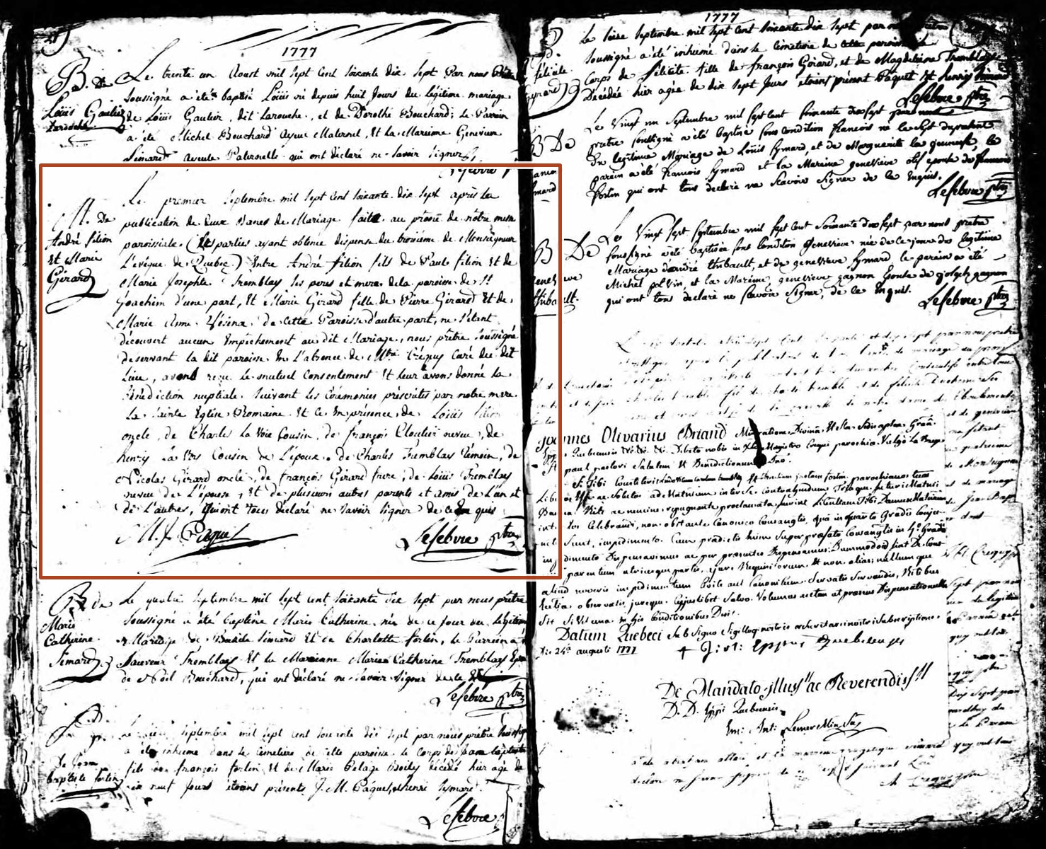 Marriage Record of André Filion and Marie Girard