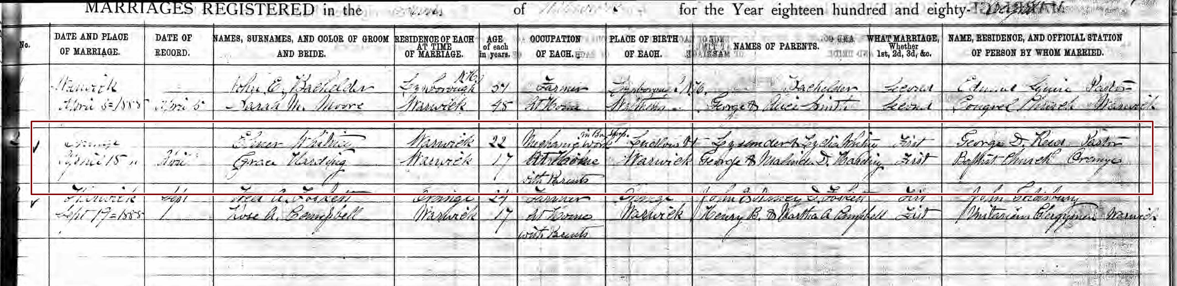 Marriage Record of Grace Harding and Elmer Whitney