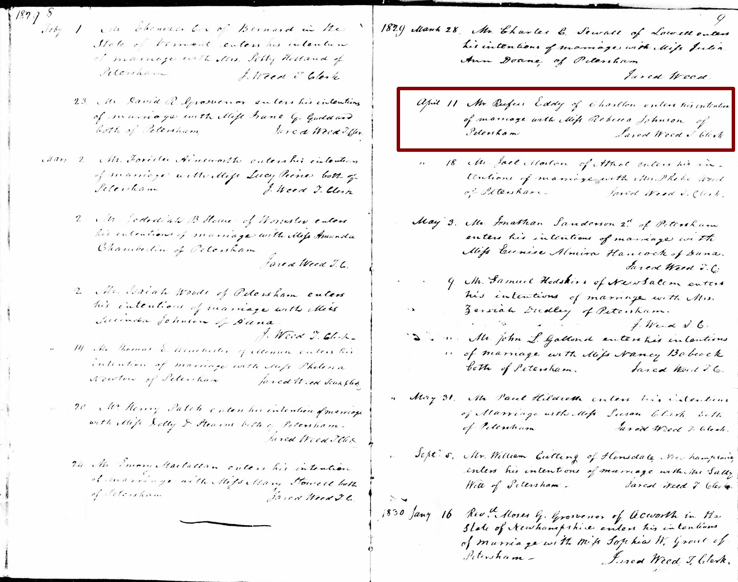 Marriage Record of Rebecca Johnson and Rufus Eddy