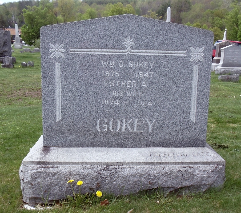 William Orton Gokey married Esther Agnes Matthews, daughter of Joseph Matthews and Jane Elisabeth Pareau.1,4 William, age 24 years, and Esther, age 25 years, appeared on the US Census of 1900 at Boston, Massachusetts. In the 1900 US Census record seems to have been quickly done, and is filled with misinformation including names and dates.1 William was According to the 1900 Census, he was grocery salesman. in 1900.1 He and Esther Agnes Matthews appeared on the census of 1910 at Clearcut Street, Northfield, Vermont.5 William was According to the 1910 Census, he was grocery salesman. in 1910.5 William, age 44 years, and Esther, age 45 years, appeared on the US Census of 1920 at 37 Jay Street, Boston, Massachusetts.6 William, age 54 years, and Esther, age 55 years, appeared on the US Census of 1930 at 37 Jay Street, Boston, Massachusetts.7 William, age 64 years, and Esther, age 65 years, appeared on the US Census of 1940 at 37 Jay Street, Boston, Massachusetts.8 William and Esther lived in 1941 at 37 Jay Street, Boston, Massachusetts, In 1941 Esther and William Gokey lived at 37 Joy Steet, Boston, Massachusetts.9 William Orton Gokey was buried at Elmwood Cemetery, Barre, Vermont.2 He died on 19 November 1947 at Boston, Massachusetts, at age 72.2