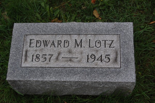 Edward Mausheim Lotz married Flora Belle Lindsay, daughter of Robert Garber Lindsay and Catherine Gardner, in 1884.1 Edward, age 42 years, and Flora, age 42 years, appeared on the US Census of 1900 at Hollidaysburg, Blair County, Pennsylvania.1 According to the Federal Census in 1900, Edward was a carpenter.1 Edward, age 52 years, and Flora, age 52 years, appeared on the US Census of 1910 on 316 Walnut Street, Hollidaysburg, Blair County, Pennsylvania.5 According to the Federal Census in 1910, Edward was a carpetner in a car shop.5 Edward, age 62 years, and Flora, age 62 years, appeared on the US Census of 1920 on 316 Walnut Street, Hollidaysburg, Blair County, Pennsylvania.6 According to the Federal Census in 1920, Edward was an inspector in a car shop.6 Edward, age 72 years, and Flora, age 72 years, appeared on the US Census of 1930 on 316 Walnut Street, Hollidaysburg, Blair County, Pennsylvania.7 According to the Federal Census in 1930, Edward was an inspector in a car shop.7 Edward and Flora lived in 1936 at 316 Walnut Street, Hollidaysburg, Blair County, Pennsylvania, According to the 1936 Hollidaysburg, Pennsylvania, City Directory, Edward and Flora lived on 316 Walnut Street.8 Edward, age 82 years, and Flora, age 82 years, appeared on the US Census of 1940 at 316 Walnut Street, Hollidaysburg, Blair County, Pennsylvania.9 Edward Mausheim Lotz died on 10 January 1945 at Hollidaysburg, Blair County, Pennsylvania, at age 87 from a coranary occlusion.10,11