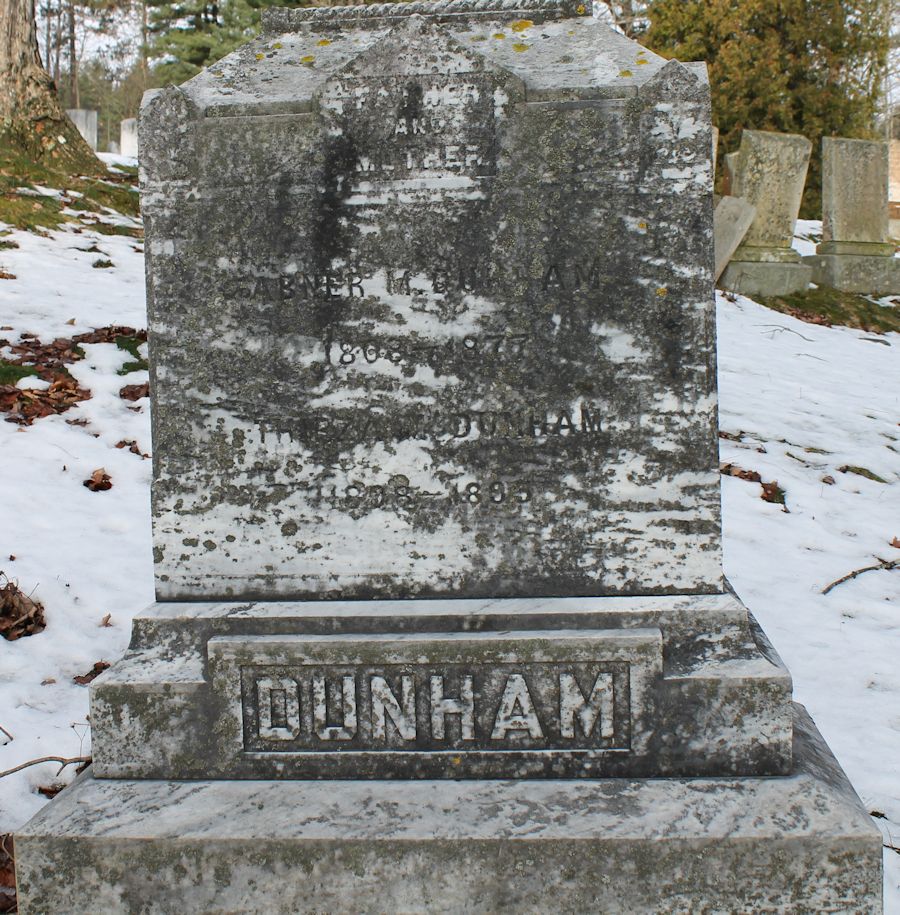 Abner M. Dunham was born on 2 February 1808 at Freeport, Maine. He was the son of Johnson Dunham and Hannah Moss.