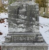 Abner M. Dunham died on 15 June 1877 at Bath, Maine, at age 69. He was buried at Maple Grove Cemetery, Bath, Maine.
