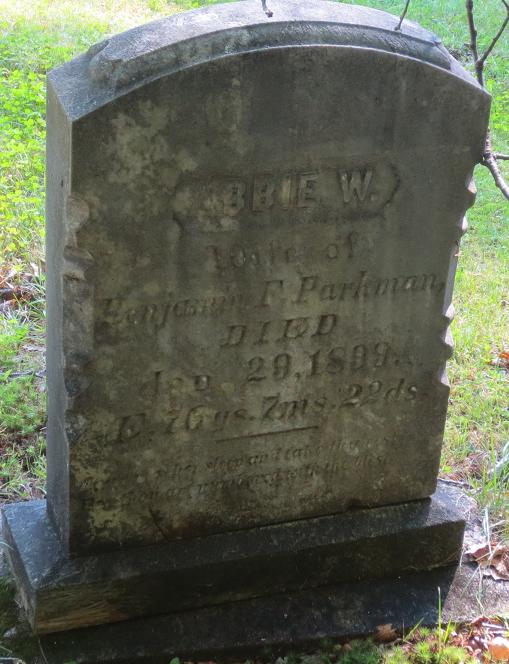 She was buried at Spring Hill Cemetery, Palmyra, Maine. Abbie's epitaph reads:
