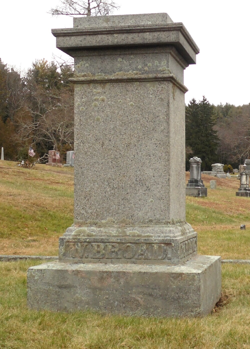 Lucy married first on 18 July 1854 at Petersham, Massachusetts, Willard Broad the son of Joseph and Sybil Broad. He was born 31 May 1796 in Barre, Massachusetts and died in 1868. He is buried in the Glen Valley Cemetery, Barre, Massachusetts.7,5,8,3