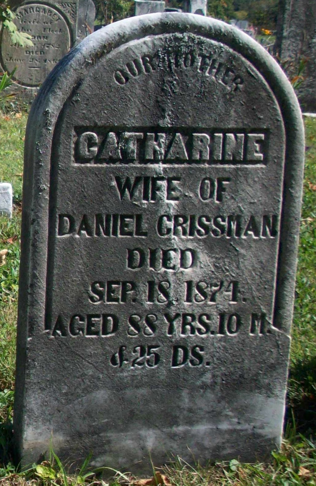 Catharine Fleck, age 19, married Daniel F. Crissman, age 21 , son of Johann Freidrich Crissman and Elizabeth Hartstock, on 26 August 1805.