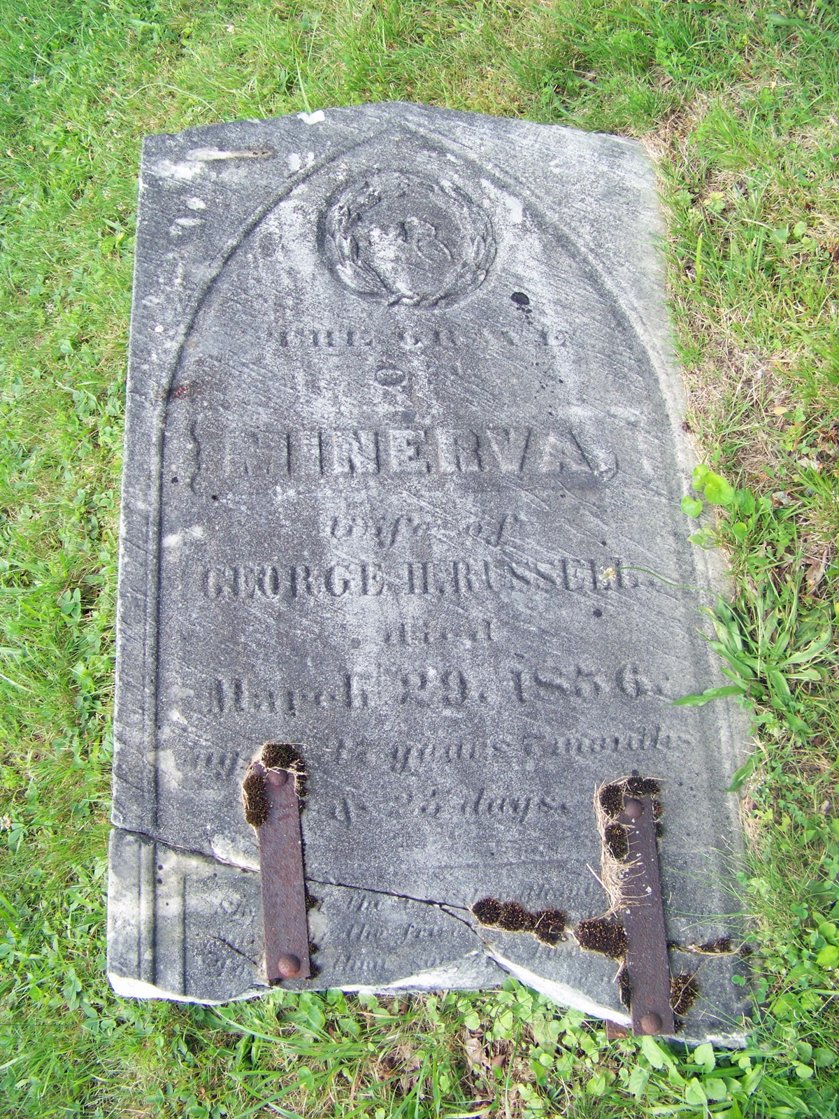 Minerva Ann ______ married George H. Russell, son of Jesse Russell and Annis Foster.2 Minerva and George, age 33 years, appeared on the US Census of 1850 at Sangerfield, Oneida County, New York.1 Minerva and George, age 38 years , appeared on the New York State Census of 1855 at Sangerfield, Oneida County, New York.3 Minerva Ann ______ died on 19 March 1856 at Sangerfield, Oneida County, New York.4,5 She was buried at Stockwell Cemetery, Stockwell, Oneida County, New York.5