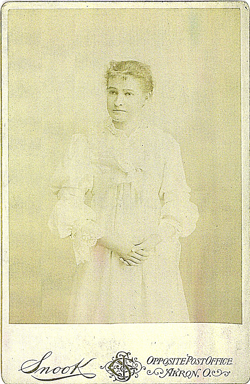 Ellen Rachel Gladwin was born on 26 August 1871 at Akron, Ohio.1 She was the daughter of Francis Gladwin and Sarah Jane Cooper. Ellen Rachel Gladwin went by the nick-name of Nellie. Sheappeared on the US Census of 1880 in the household of Francis Gladwin and Sarah Jane Cooper at 308 Voris Street, Akron, Ohio.2 Ellen Rachel Gladwinappeared on the US Census of 1900 in the household of Arthur Herbert Hunsicker and Frances Gladwin at 504 Allen Street, Akron, Summit County, Ohio.1 According to the Federal Census in 1900, Ellen was a cashier.1 Sheappeared on the US Census of 1910 in the household of Sarah Jane Cooper at 268 East Voris Street, Akron, Summit County, Ohio.3 Ellen Rachel Gladwin died on 11 October 1957 at Akron, Ohio, at age 86. She was buried on 14 October 1957 at Glendale Cemetery, Akron, Ohio, in secton 25, plot 224.